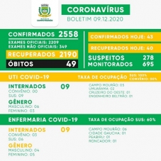 Mais 43 casos de covid-19 foram confirmados nesta quarta-feira em Campo Mourão. Os recuperados foram 40 e o número de moradores com o vírus ativo subiu mais um pouquinho: 320. Os casos suspeitos caíram de 355 para 278. A UTI segue com 100% de ocupação entre os leitos do SUS. Já na enfermaria o índice caiu para 60%.