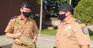 O 11º BPM homenageou nesta sexta-feira o subtenente Claudemir Macedo de Souza. Motivo: Foi para a reserva remunerada, ou seja, se aposentou. O policial ingressou na PM em abril de 1991 e nos últimos anos atuou em Janiópolis, mas sempre morando em Campo Mourão, onde se elegeu vereador este ano. Portanto, sai da PM e entra na Câmara.