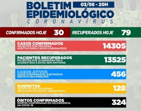 Campo Mourão teve 30 casos de covid-19 confirmados nesta terça-feira. Os recuperados foram 79. Assim, o vírus ativo caiu para 456. Os casos suspeitos subiram de 79 para 128. Foi confirmada uma morte, a terceira de agosto. Na ala covid são 33 os pacientes internados. Taxa de ocupação de leitos: 68% na enfermaria, 66% na UTI SUS e 20% na UTI convênios.