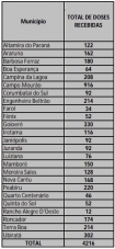 A 11.a Regional de Saúde vai distribuir 10.591 doses de vacina nesta quarta-feira pela manhã. Tem Astrazeneca, Coronavac e Pfizer. Do total, 4.216 são para a primeira dose, sendo 916 para Campo Mourão (veja os demais municípios da Comcam no quadro acima).