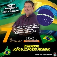 Muita gente usou as redes sociais neste feriado de 7 de setembro para postar mensagens pelo Dia da Independência do Brasil. Em Moreira Sales, o vereador João Luiz Posso Moreno foi um deles. Fez uma arte bonita, com bandeira, frases e tudo mais. Só teve um probleminha: Brasil saiu escrito com Z...