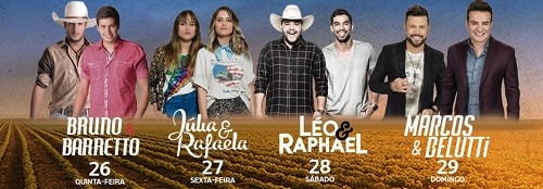 Depois vêm Júlio & Rafaela (sexta), Léo & Raphael (sábado) e Marcos & Belutti (domingo).