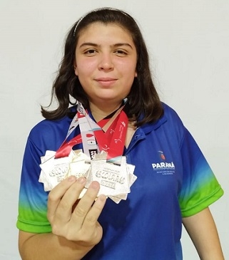 A atleta Amanda Mossmann, de Engenheiro Beltrão, fez bonito nas Paralimpíadas Escolares, disputadas esta semana em São Paulo. Foi medalha de ouro no lançamento de disco e prata no arremesso de peso e no lançamento do dardo. Na prava do disco, ela bateu o novo recorde brasileiro em sua categoria, com 17m99.