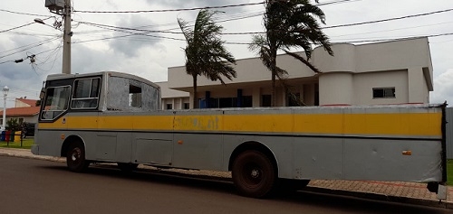 Na prefeitura de Campina da Lagoa, ônibus antigo foi transformado em caminhão.