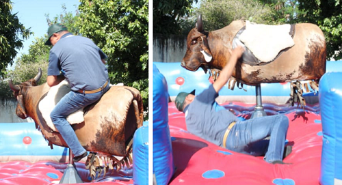 Não foi somente a criançada que se divertiu com a programação montada pelo Dia das Crianças do Cras, em Janiópolis. O presidente da Câmara de Vereadores, Elias Veloso, experimentou o touro mecânico. Ah, digamos que estava fiscalizando o equipamento...