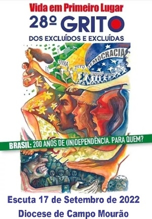 Acontece neste sábado, em Campo Mourão, o 38° Grito dos Excluídos e Excluídas. Será no Santuário de Nossa Senhora Aparecida, na Vila Urupês. "Brasil: 200 anos de independência. Pra quem?" é o tema Começa às 13h e segue até o fim da tarde. Confira a programação: