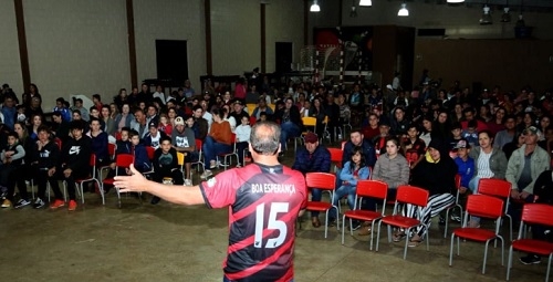 Boa Esperança - Foi iniciada semana passada a escolinha de futebol do Athletico Paranaense. Cerca de 200 crianças receberam kits de uniformes. O prefeito Joel Buscariol foi de camisa do Furacão e tudo.