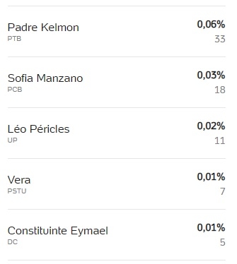 Dos chamados candidatos "nanicos" que disputaram a Presidência da República, Padre Kelmon (PTB) foi o mais votado em Campo Mourão. Fez 33 votos. Valeu a exposição nos debates. Sofia Manzano (PCB) ficou em segundo, com 18. Depois vieram Léo Péricles (UP), com 11, e Vera (PSTU), com 7. A lanterninha ficou com Constituinte Eymael (DC), com cinco votinhos.