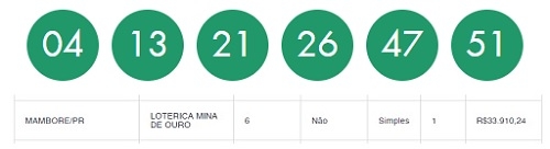 A fortuna passou raspando, de novo, pela região. Uma aposta feita em Mamborê - lotérica Mina de Ouro - acertou cinco das seis dezenas da Mega Sena sorteada nesta sábado. Pela quina, vai receber um prêmio de R$ 33,9 mil. Foram 814 quinas em todo o País. A mega mesmo saiu para dois sortudos e cada um vai levar R$ 158,9 milhões. Ah, por um numerozinho...