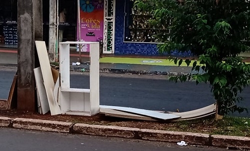 Restos de móveis deixados, nesta terça-feira, em canteiro central da av. Manoel Mendes de Camargo.