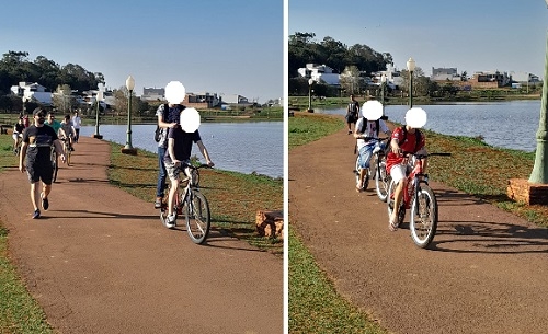 "É proibido bicicleta no Parque do Lago. No sábado à tarde, com uma atividade escolar no parque tal atitude se torna um perigo para as nossas crianças".