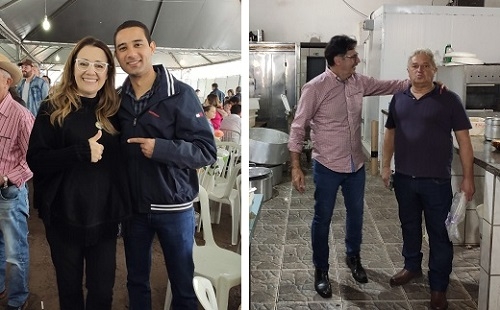 A 25ª Festa do Carneiro ao Vinho, realizada domingo em Peabiru, também teve a presença de uma candidata a governadora. Solange Bueno (PMN) é professora em Curitiba e disputa a eleição pela primeira vez. Na foto, ela aparece com o vereador Yuri Cardoso Cairos (Quarto Centenário), que é primo dela.