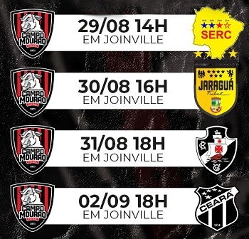 Campo Mourão estreia nesta segunda-feira (14h) na Taça Brasil de Futsal. Será contra a Serc/MS. A competição reúne 10 equipes em Joinville/SC, Os times estão divididos em dois grupos e os dois primeiros de cada chave passam para as semifinais. O grupo do Carneirão tem ainda Jaraguá/SC, Vasco/RJ e Ceará/CE.