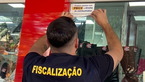 Frase escrita em adesivo que o Procon de Campo Mourão está colando em vitrines de lojas da cidade. A campanha objetiva conscientizar consumidores e empresários sobre a lei que exige a exibição dos preços nos produtos expostos em vitrines.