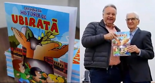 A prefeitura de Ubiratã lançou nesta quarta-feira uma cartilha com a história dos 60 anos do município. O material será entrega a alunos da rede municipal de ensino. No lançamento, além de crianças, antigos moradores também ganharam exemplares. Um deles foi o ex-prefeito Áureo Zamprônio (1970/73), que recebeu a cartilha das mãos do prefeito Fábio D"Alécio.