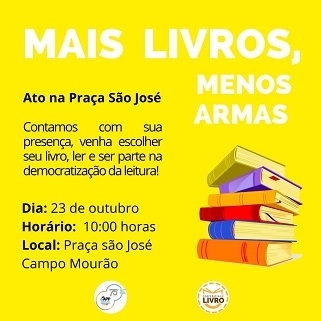 O projeto "Cooperativa do Livro", que acontece todo domingo na Feira Criativa, em Campo Mourão, terá uma edição especial neste domingo. O número de obras disponíveis será maior e haverá música ao vivo a partir das 10h30. O projeto, que empresta livros de graça, tem como objetivo facilitar o acesso à leitura, deixando-a ao alcance de todos.