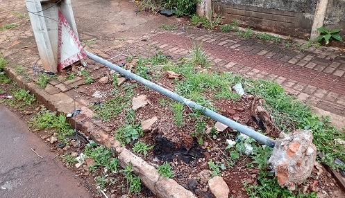 Tá faltando placa de preferencial em alguma esquina de Campo Mourão? Tem uma caída no meio da quadra da rua Araruna.