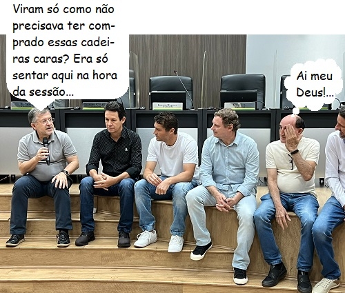 O clic é desta sexta-feira, na Câmara de Campo Mourão, onde o prefeito Tauillo Tezelli esteve reunido com alguns vereadores. Na foto, estão Toninho Machado, Bina Teixeira, Escrivão Parma, Olivino Custódio e, no cantinho, Jadir Pepita. Pelo "banco" usado, nem precisa dizer que o encontro foi informal, precisa?...
