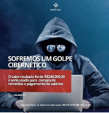 A Santa Casa de Campo Mourão foi vítima de um "furto cibernético" e perdeu cerca de R$ 240 mil de uma conta bancária.