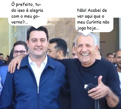 Os clic é da semana passada, quando o prefeito de Campina da Lagoa, Milton Luiz Alves, aproveitou evento em Curitiba para fazer pose ao lado do governador Ratinho Jr. O prefeito saiu todo feliz na foto. Certamente não é pela fase atua do seu time do coração....