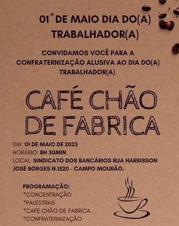 Quatro sindicatos e o diretório do PT de Campo Mourão promovem nesta segunda-feira (8h30) o "Café da manhã chão de fábrica".