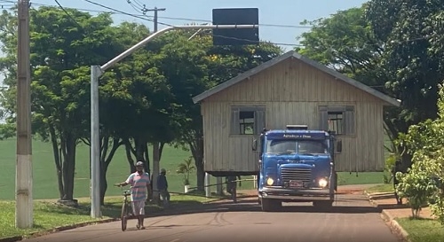 O caminhoneiro José Ferraz, 74, de Quarto Centenário, foi notícia no portal G1 nesta segunda-feira. Motivo? Há 45 anos ele transporta casas em seu caminhão. Sim, leva casas inteiras de um lugar para outro. Disse que já transportou mais de mil. Acidentes? Nenhum. Teve transporte de até 100 km, entre Umuarama e Nova Autora. Quanto custa o serviço? De R$ 5 mil a R$ 12 mil, dependendo o tamanho da casa.