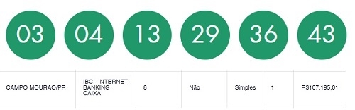 Ninguém acertou as seis dezenas sorteadas nesta quarta-feira da Mega Sena. Assim, ninguém levou o prêmio principal, de R$ 38 milhões, que fica acumulado e deve chegar a R$ 47 milhões no próximo sorteio. Já a quina teve 109 apostas vencedoras. Uma delas é de Campo Mourão, feita através da internet. Esta ganhou R$ 107,1 mil.