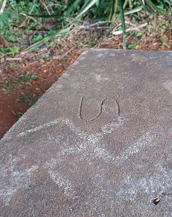 Símbolo nazista pichado ao lado de banco perto da barragem do Parque do Lago, em Campo Mourão.