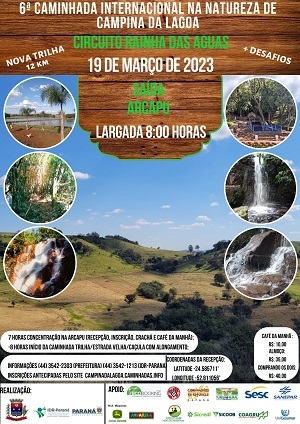 Acontece no próximo domingo (8h) a 6ª Caminhada Internacional na Natureza de Campina da Lagoa.