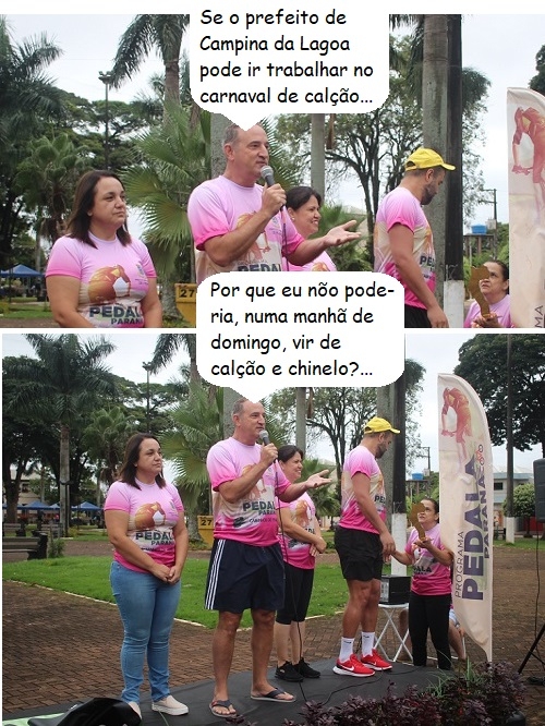 Os cliques são do último domingo, quando Peabiru realizou a segunda edição do Pedala Paraná Rota Caminhos de Peabiru. O prefeito Júlio Frare participou da abertura, com direito a discurso e tudo. Como era domingão, ele estava bem à vontade, de camiseta do evento, calção e chinelão...