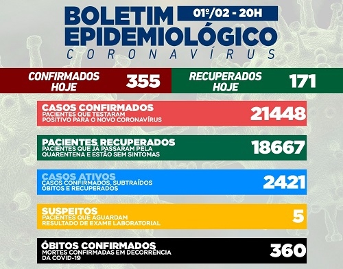 Campo Mourão repetiu nesta segunda-feira o recorde de sábado em número de novos casos confirmados de covid: 355. E bateu novo recorde de casos ativos: 2.421. Na ala covid são 15 as internações - oito na enfermaria e sete na unidade de terapia intensiva, onde estão quatro mourãoenses. A taxa de ocupação de leitos ficou em 87% na enfermaria, 40% na UTI SUS e 30% na UTI convênios.