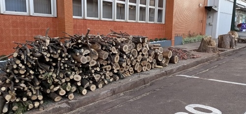 A serra elétrica detonou árvores da rúa São Paulo, ao lado do Banco do Brasil de Campo Mourão.