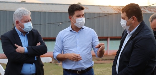Guto Silva, chefe da Casa Civil do governo do Estado, durante visita a Barbosa Ferraz, em evento com o prefeito Edenilson Miliossi e o deputado Douglas Fabrício; nesta quinta-feira.