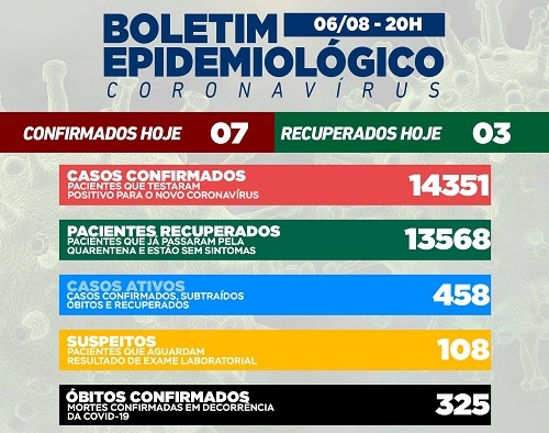 Campo Mourão voltou a ter um dia de pouco casos confirmados de covid-19. Foram sete nesta sexta-feira, com três recuperações. Os suspeitos caíram de 196 para 108. Foi confirmada uma morte, a quarta de agosto. Na ala covid caiu para 30 o número de internações. Taxa de ocupação de leitos: 68% na enfermaria, 62% na UTI SUS e 10% na UTI convênios.
