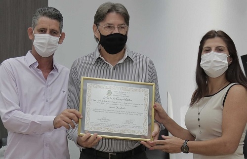 A Câmara de Campo Mourão entregou, nesta terça-feira, moção de congratulações ao presidente da Fundação São José, Samoel Kozelinski. Foi pela realização da Rota da Fé, que já teve 60 edições realizadas. O autor foi o presidente da Câmara, Jadir Pepita, com aprovação por unanimidade.