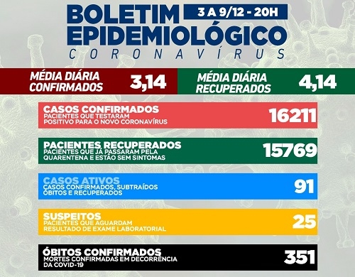 Campo Mourão teve 22 casos de covid-19 confirmados nos últimos sete dias. Os recuperados no período foram 29. O número casos ativos são 91. Ninguém morreu de covid-19 na última semana. Na ala covid são seis as pessoas internadas, sendo quatro na UTI. Dois mourãoenses estão na unidade de terapia intensiva.
