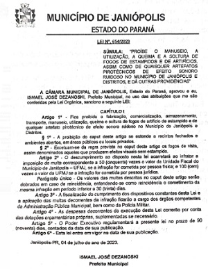 Desta vez foi a Câmara de Janiópolis que aprovou lei neste sentido.