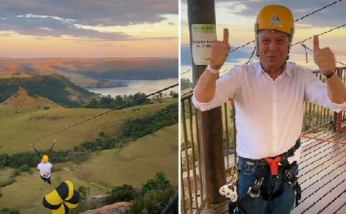 Marcio Nunes, secretário de Turismo do Paraná, após usar a tirolesa da Pedra do Índio, em Ribeirão Claro, considerada mais longa do Estado. Fica na região da represa de Chavantes, onde os governos de Paraná e São Paulo firmaram parceria para o turismo na chamada Angra Doce.