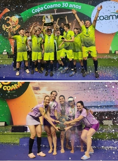 Vila Nova (distrito de Toledo), no futebol suíço, e Maracaju/MS, no vôlei de areia-f, foram os campeões da 16ª Copa Coamo de Cooperados, que teve a fase final disputada neste sábado, em Campo Mourão. A cerimônia de premiação aconteceu no início da noite. Iniciada em maio, a competição contou com a participação de 399 times de futebol e 274 de vôlei.