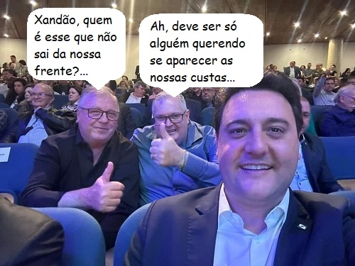 O clic é desta segunda-feira, durante evento do governo do Estado, em Curitiba. O governador Ratinho Jr fez uma selfie com a participação de dois prefeitos da região - Ricardo Radomski (Mamborê) e o presidente da Comcam, Xandão Donato (Corumbataí do Sul).