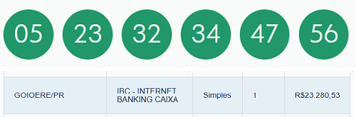 Ninguém acertou as seis dezenas da Mega Sena que foram sorteadas nesta quinta-feira. Assim, o prêmio que estava em R$ 60 milhões, deve chegar a R$ 68 milhões no sorteio de sábado. A quina teve 172 apostas ganhadores, sendo 10 do Paraná e cada uma vai levar R$ 23,2 mil. Uma dessas quinas é de Goioerê, feita através do site da Caixa Econômica.