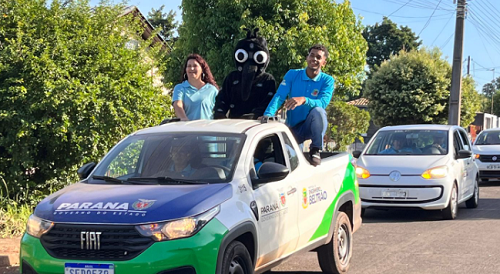 Teve carreata nesta sexta-feira em Engenheiro Beltrão. Mas nada de comemoração, não. A ação foi realizada pela prefeitura para alertar contra os casos de dengue e de Chikungunya. As duas doenças são transmitidas pelo mesmo mosquito, o Aedes Aegypti. Na quarta-feira, o prefeito Junior Garbim decretou situação de emergência por causa da epidemia de Chikungunya no município.