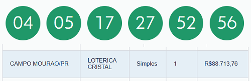 Ninguém acertou as seis dezenas da Mega Sena sorteada neste sábado. Assim, o prêmio segue acumulado e deve chegar a R$ 61 milhões no próximo sorteio, terça-feira. A quina teve 95 apostas ganhadoras, das quais 14 são do Paraná. Uma delas foi feita na lotérica Cristal, em Campo Mourão, e faturou R$ 88,7 mil.