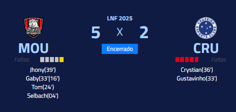 Campo Mourão venceu o Cruzeiro/MG neste domingo pela Liga Nacional de Futsal.