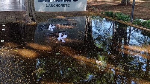 Na praça São José essa água está acumulada há dias. Toda vez que chove essa água fica empossada vários dias neste local. Perigo com mosquito da dengue...