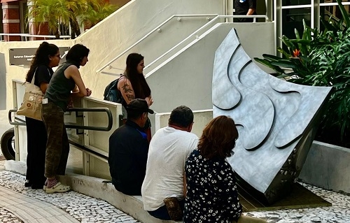 Olha onde o monumento Pro Solo, da Praça do Fórum de Campo Mourão foi parar: no jardim do Museu Alfredo Andersen, em Curitiba. É uma exposição em homenagem ao artista plástico Fernando Calderari. Um dos autores, João Osório Brzezinski, visitou a obra e ficou emocionado, 50 anos depois, de ver seu trabalho. Antes de voltar a Campo Mourão, o monumento deve ficar exposto em dois espaços de grande circulação em Curitiba.