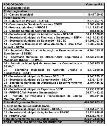 A prefeitura de Campo Mourão protocolou na Câmara, nesta quarta-feira, o projeto do orçamento do município para 2026.