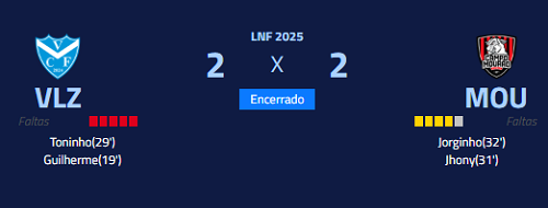 O Vélez abriu 2 a 0, mas o Carneirão reagiu.
