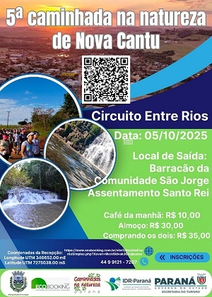 Acontece no próximo domingo (8h) a 5ª Caminhada Internacional na Natureza de Nova Cantu.