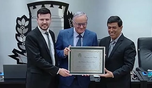 A Câmara de Campo Mourão realizou sessão solene nesta segunda-feira à noite. Foi para a entrega da Comenda 10 de Outubro para a Igreja Presbiteriana Renovada do Brasil pelos 50 anos de atuação no município. A entrega foi feita ao presidente da IPRB, pastor Advanir Alves Ferreira, pelo vereador autor da homenagem, Sidnei Jardim, e pelo advogado Gustavo Perdoncini, que representou o prefeito Douglas Fabrício. Sete vereadores participaram da sessão.